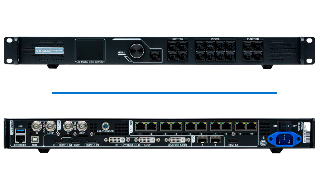 • El VX1000 es el nuevo controlador “todo en uno” de NovaStar, que integra el procesamiento y control de video en un solo dispositivo. Cuenta con 10 puertos Ethernet y soporta diferentes modos de operación (controlador de video, convertidor de fibra, modo bypass). Una sola unidad puede gestionar hasta 6,5 millones de píxeles. Y lo encuentras aquí en World Music.